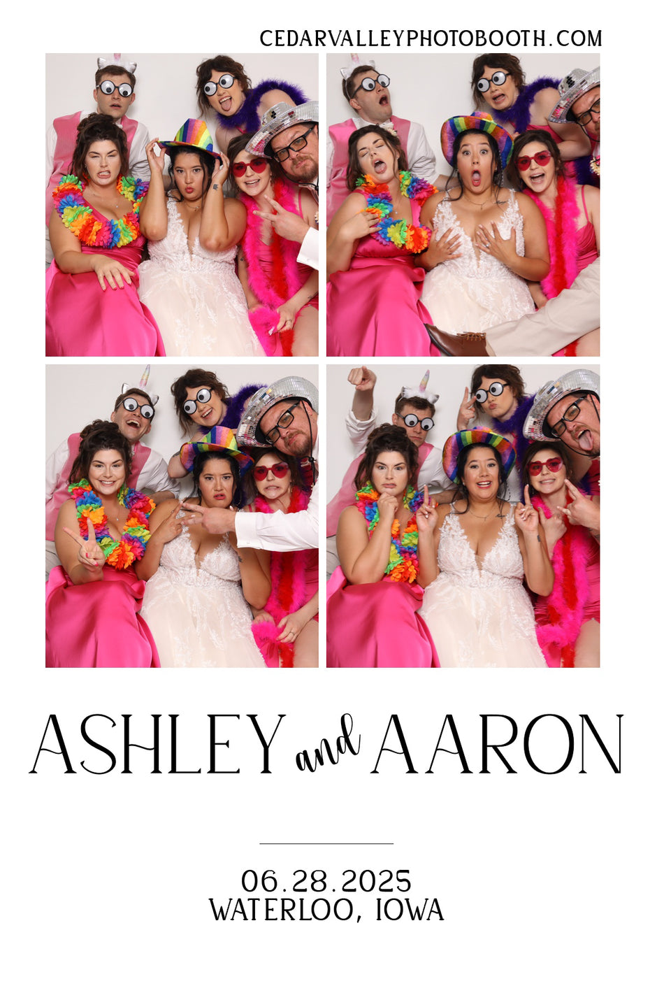 We had CVPH at our wedding, and it was such a hit with our guests! Juli, was an absolute pleasure to work with—professional, friendly, and made everything run so smoothly. The setup looked great, the props were fun and high-quality, and the photo strips turned out perfect. Juli even customized the strip design to match our wedding theme, which was such a thoughtful touch. We’re so glad we chose Cedar Valley Photo Booth for our big day—thank you for making it even more memorable!